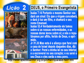1. Abrão, o caldeu. 2. Abraão, o evangelizado. 3. O evangelista Abraão. II - A PALAVRA DE DEUS É EVANGÉLICA 1. A Lei de Moisés é evangélica. 2. A história de Israel é evangélica. 3. A poesia de Israel é evangélica. 4. Os profetas são evangélicos. III - EXECUTANDO O TRABALHO DE DEUS 1. Israel e a evangelização mundial. 2. A missão intransferível da Igreja. SÍNTESE DO TÓPICO I - DEUS chamou Abraão e seus descendentes para anunciarem as virtudes do Altíssimo. SÍNTESE DO TÓPICO II - A Bíblia é o livro de DEUS, que demonstra que JESUS é o CRISTO prometido pelo Pai. SÍNTESE DO TÓPICO III - Israel, como povo escolhido, deveria executar o trabalho de DEUS entre as nações. SUBSÍDIO TEOLÓGICO top1"O primeiro punhado de promessas feitas a Abraão, que na ocasião talvez ainda tivesse em Ur dos caldeus, inclui uma promessa ao mundo. Realmente, essa é a promessa mais plena de todas. É ótimo receber uma bênção, mas é melhor ainda conceder uma bênção. Dessa forma, é assegurado a Abraão que 'em ti serão abençoadas todas as famílias da terra' (Gn 12.3). Essa promessa e garantia são repetidas em Gênesis 18.19; 22.19 (cf. At 3.25; Gl 3.8).
