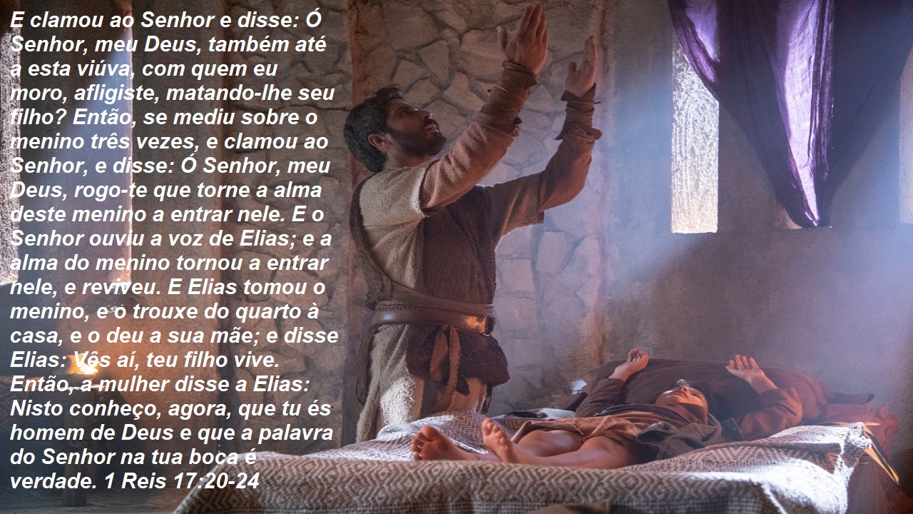 Em 1Rs 17.22 O SENHOR OUVIU A VOZ DE ELIAS. DEUS restaurou a vida do menino em resposta à oração de Elias. Este é o primeiro caso bíblico de alguém ressuscitado dentre os mortos (2 Rs 4.34; At 20.10). Os três milagres relatados no cap. 17 manifestam notavelmente a glória e o amor de DEUS. Demonstraram a Elias e à viúva que, no meio de circunstâncias trágicas, o poder e o amor de DEUS estão em evidência a favor daqueles que o amam e que são chamados segundo o seu propósito (ver Rm 8.28).